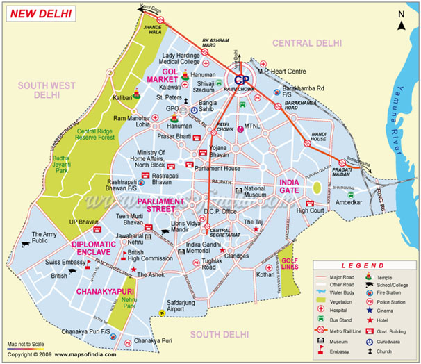The Parliament, the President’s House and all Central Government Offices are situated in this area. Most of the important embassies are also housed in this area. The district is bestowed with evergreen trees, lush green parks, gardens including the famous Mughals Garden, Lodhi Garden, Nehru Park, etc. Being situated at the centre, this place is also the heart of business centre as most of the famous shops including state emporia, business companies, airlines and tourism offices, hotels and other establishments do brisk business. Most of the banks have their main office/branch at Connaught Place and adjoin areas. The basic amenities are well provided by New Delhi Municipal Council (NDMC) – a centralized and well-coordinated Government organization.